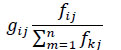 where mij corresponds to the elements of the MTI matrix and quantifies the direct and indirect effects (affecting) species or group i has on any (affected) group k of the food web. However, the effect of the change in a group’s biomass on the group itself (i.e., mij) is not included. The contribution of biomass from every species or functional group with respect to the total biomass of the network was estimated using the following equation: