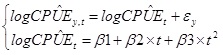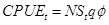 is the natural logarithm of expected CPUE and is assumed to be a function of t with a hierarchical structure: