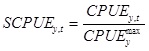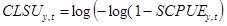 SCPUE values range between 0 and 1. To convert these values to real numbers in order to apply a normal probability distribution in the modelling process, SCPUE estimates were transformed using the complementary log-log (clog-log) function: