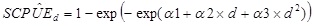 where α1, α2, and α3 are model parameters. The expected SCPUE for any given day (d) was calculated as: